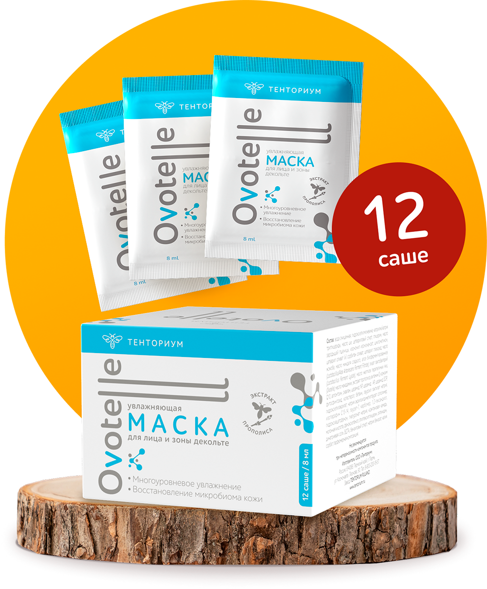 Увлажняющая маска Ovotelle для лица, шеи и зоны декольте (12 саше по 8 мл)